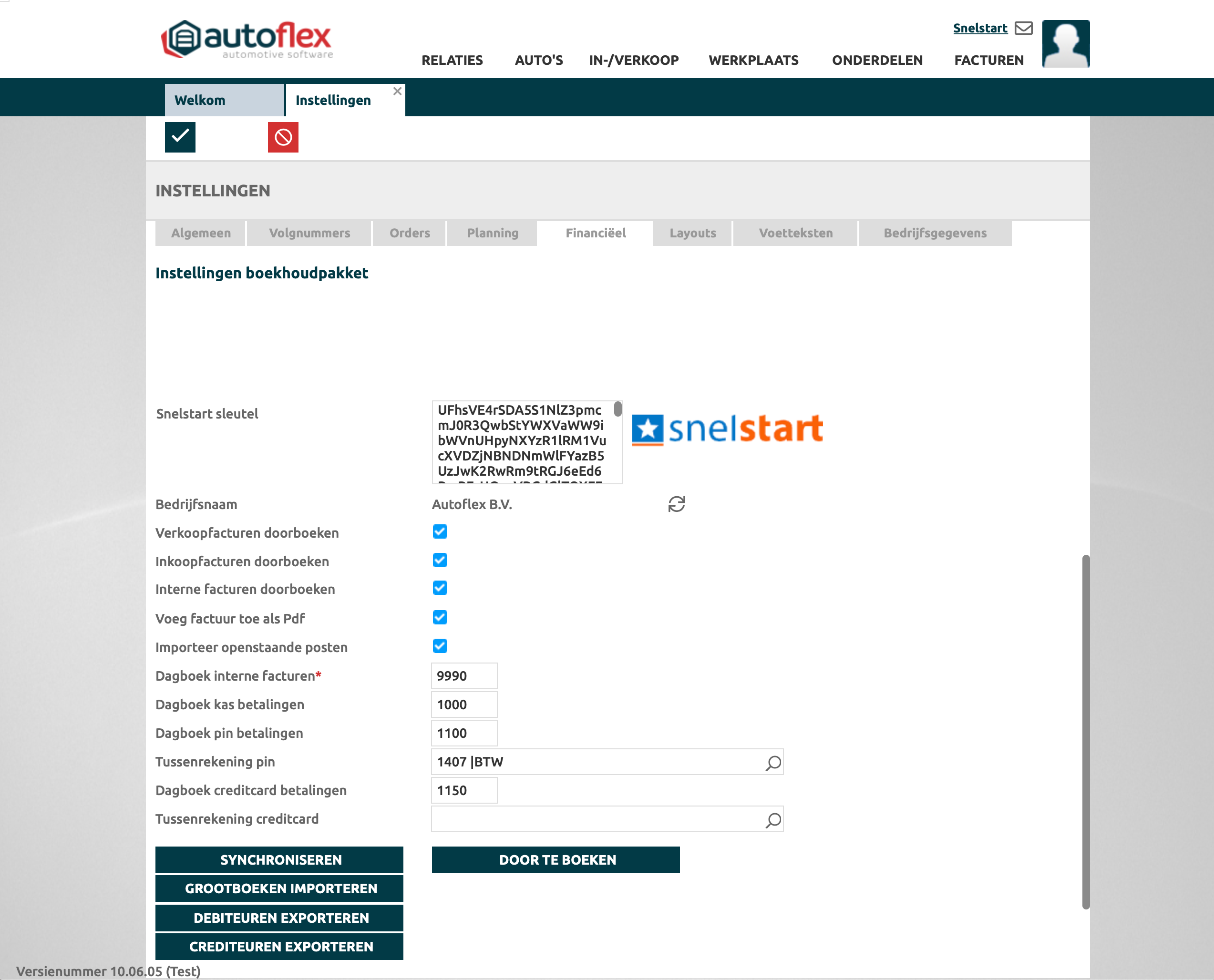 Deze instellingen zijn alleen zichtbaar als Snelstart is ingesteld als gekoppeld boekhoudpakket