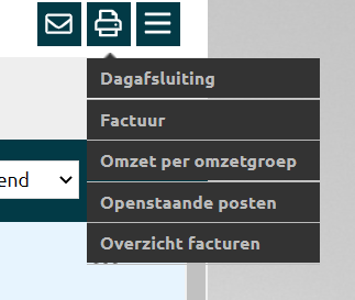 Klik op de factuur die je wilt printen en daarna op de Printer icoon (rechts bovenin), kies voor Factuur en je print een factuur.