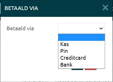 De betaalwijze zorgt voor een juiste vulling van het rapport Dagafsluiting. Hiermee kan je de kas en pinbetalingen controleren.