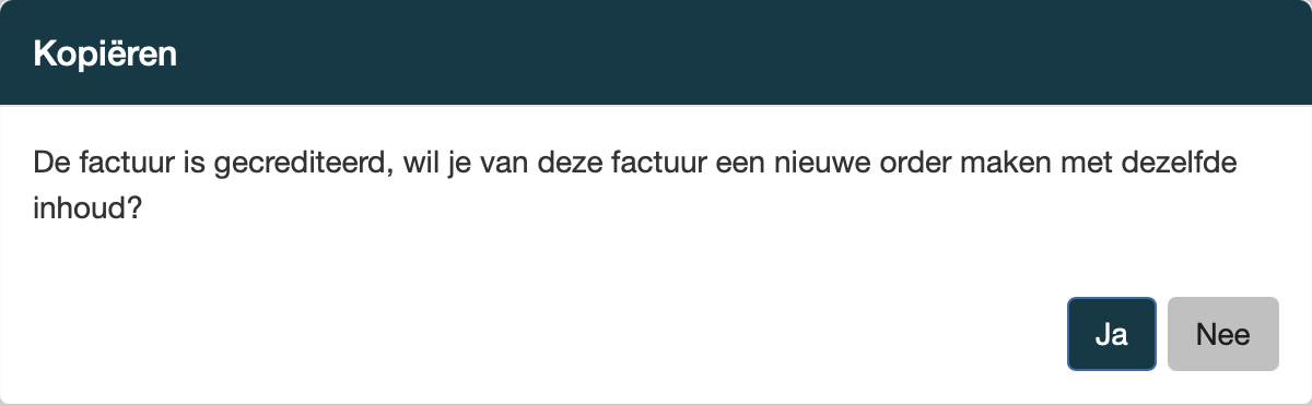 Kies ja om een nieuwe order met dezelfde inhoud te maken. |