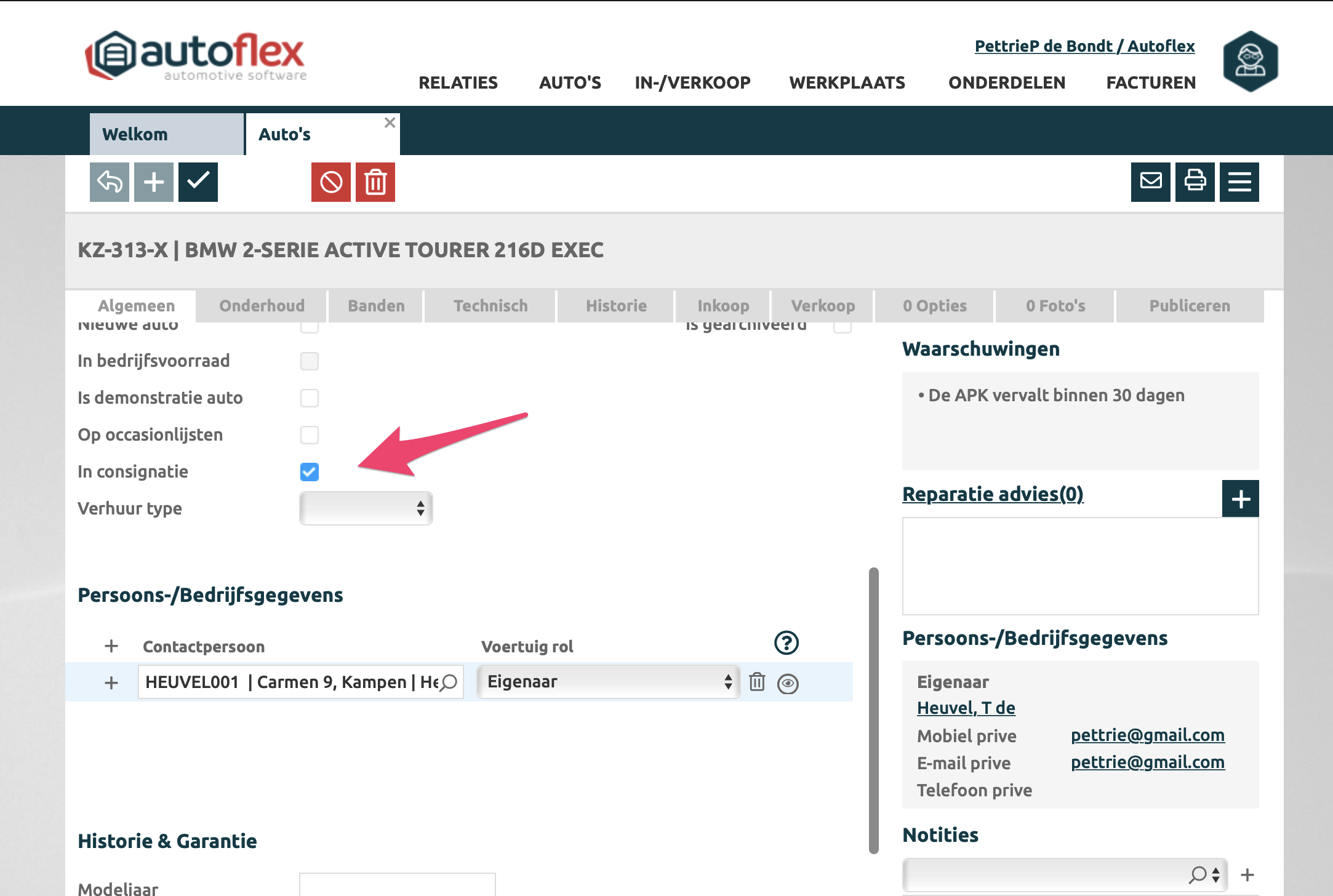 Hoe verwerk je de kosten bij een in consignatie voertuig?
