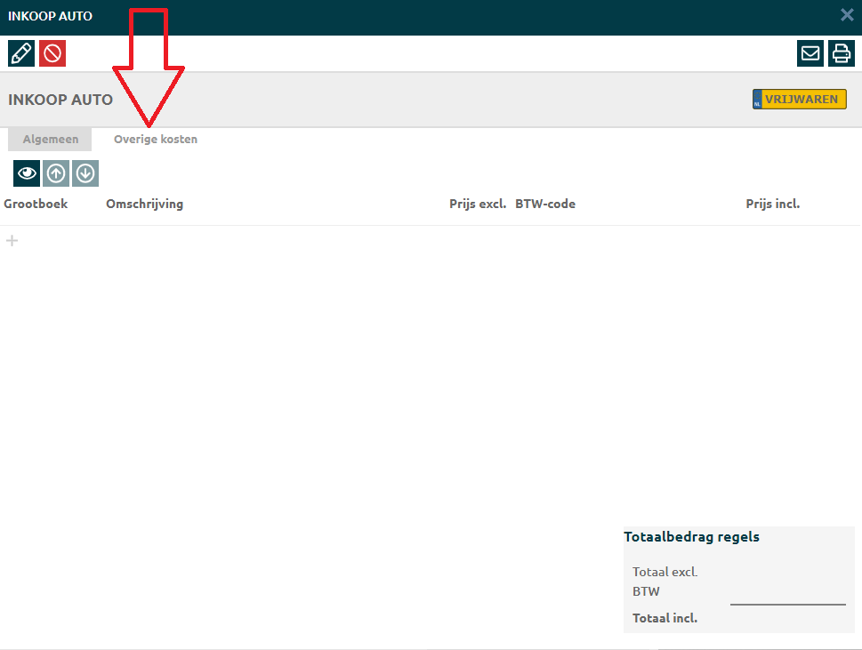 Hiervoor ga je naar het tabblad Overige kosten bij het inkopen van de voertuig.