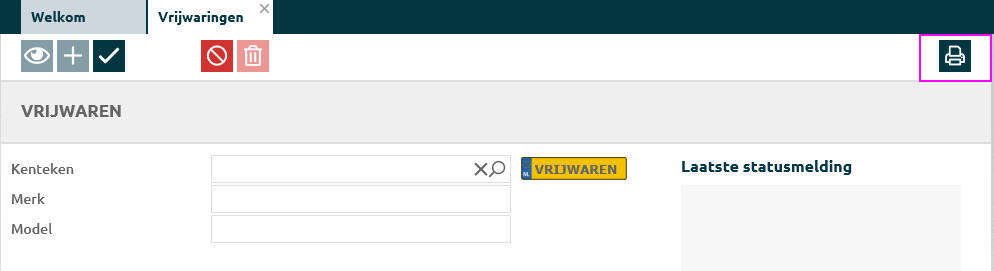 Je kan een vrijwaringsbewijs afdrukken door op de printer-icoon rechtsboven in het scherm te klikken.