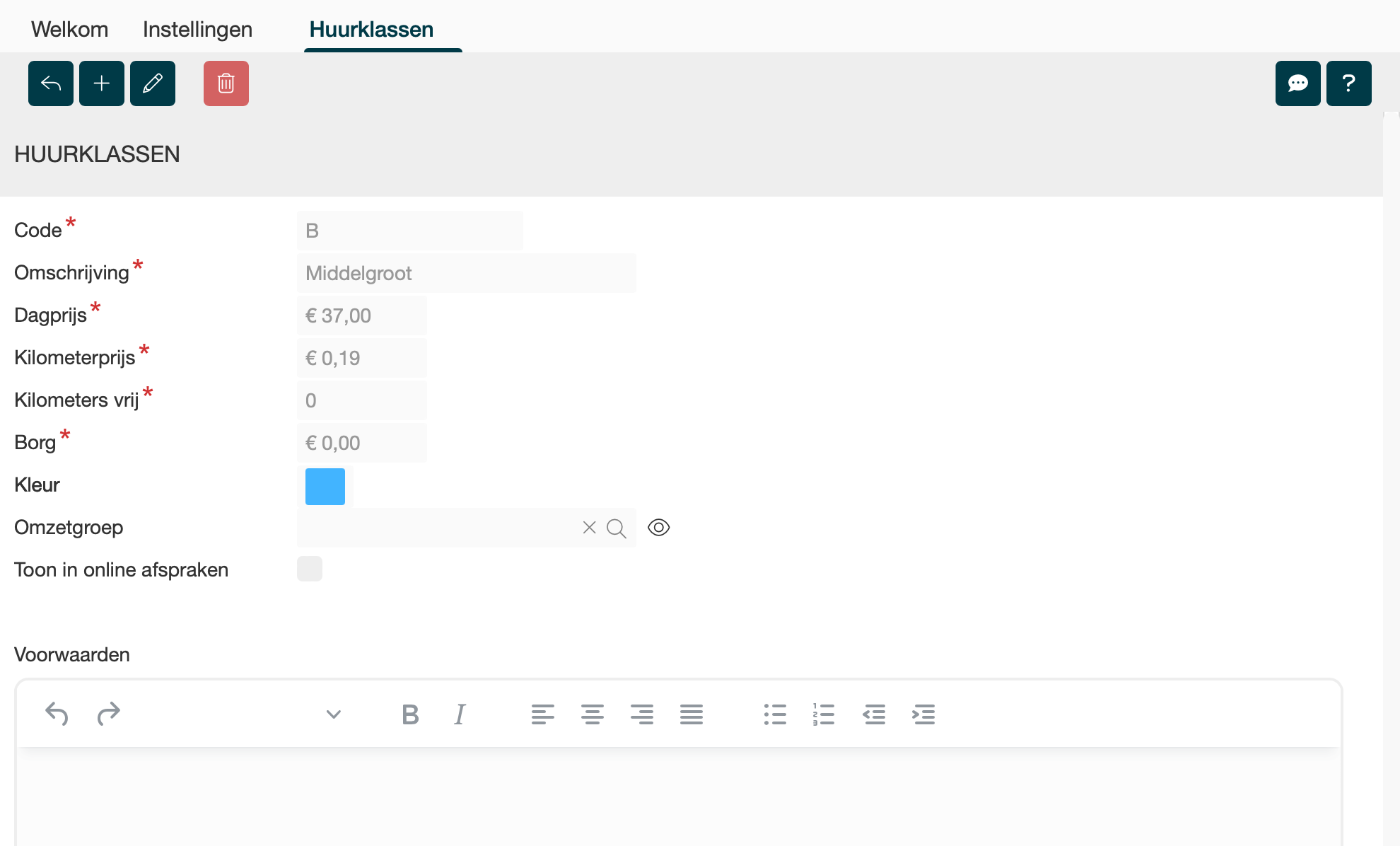 Het invullen van de huurklasse van het verhuurvoertuig.