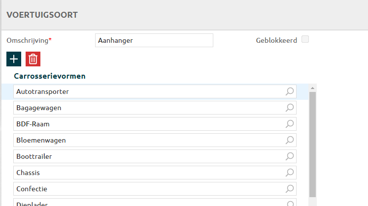Om een nieuwe carrosserievorm aan te maken of aan te passen ga naar Carrosserievormen.