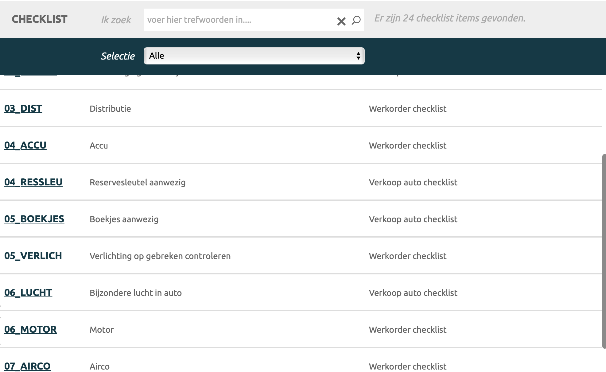 Locatie = Maak een keuze uit Verkoop auto checklist of werkorder checklist