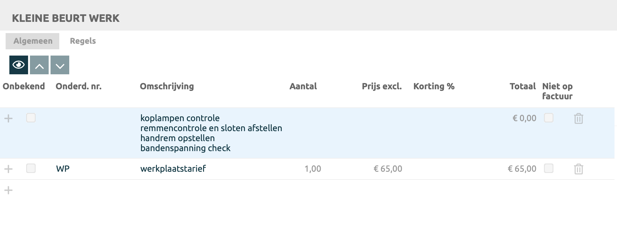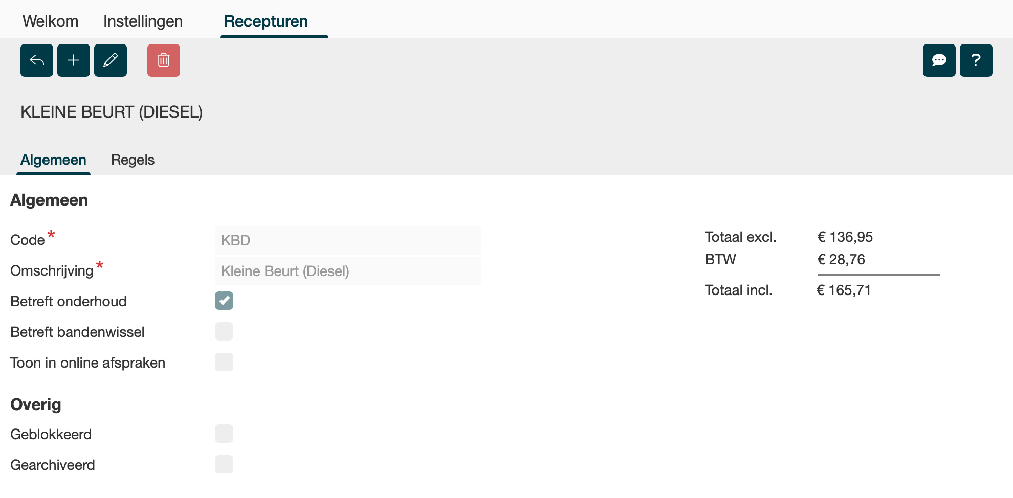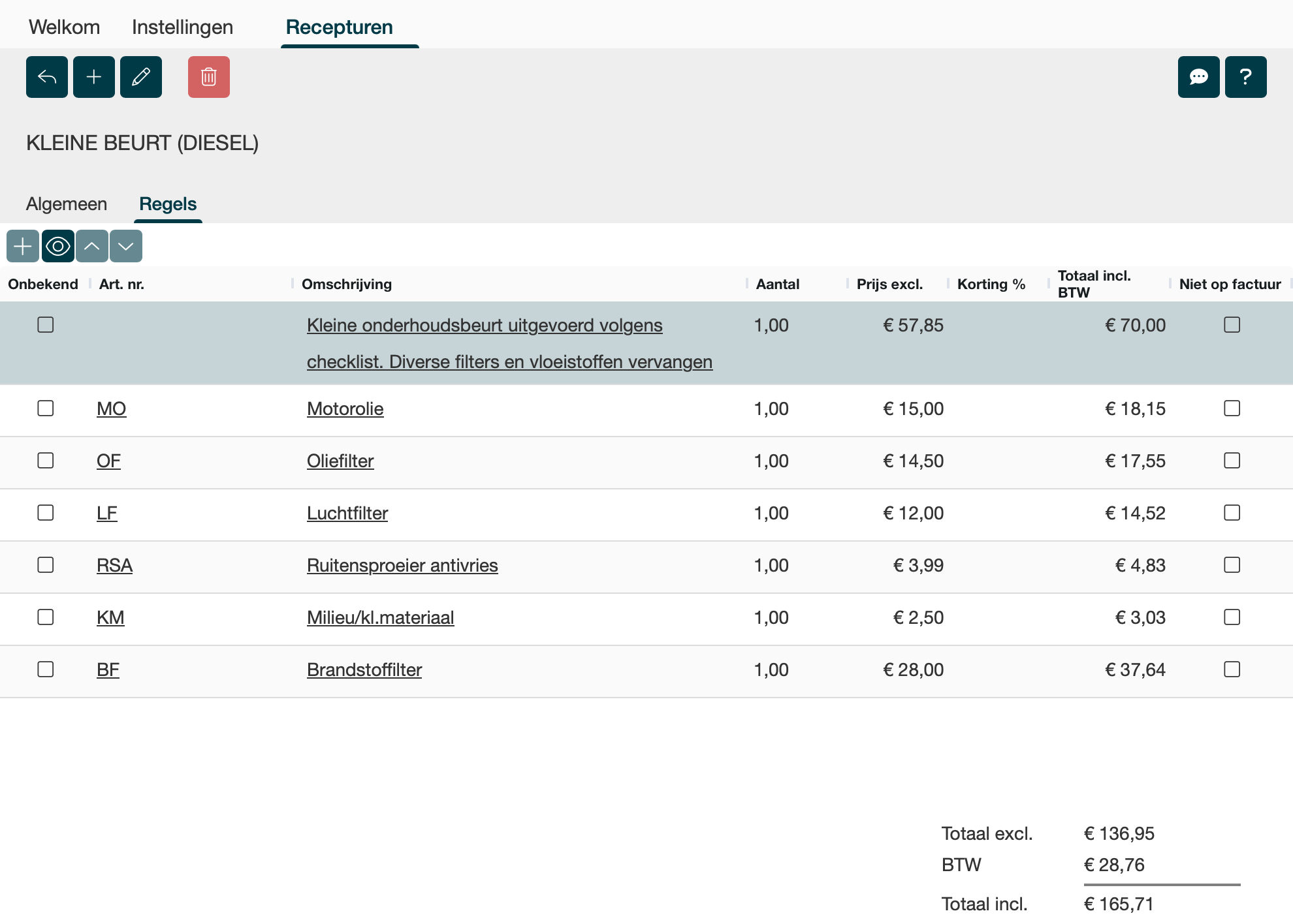 Receptuur order regels, deze kun je net als een order toevoegen, aanpassen en weer verwijderen. |