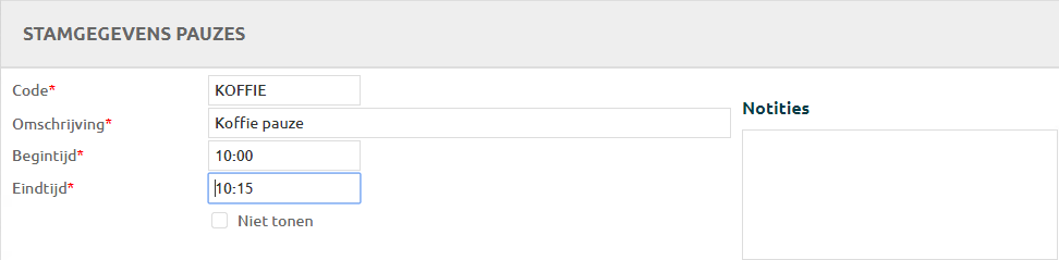 Eindtijd = Vul hier de eind tijd in van de pauze.