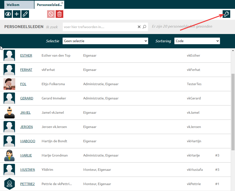 Klik op een persoon om gegevens te wijzigen. Klik hier voor uitleg over het wijzigen van personeelsgegevens. |