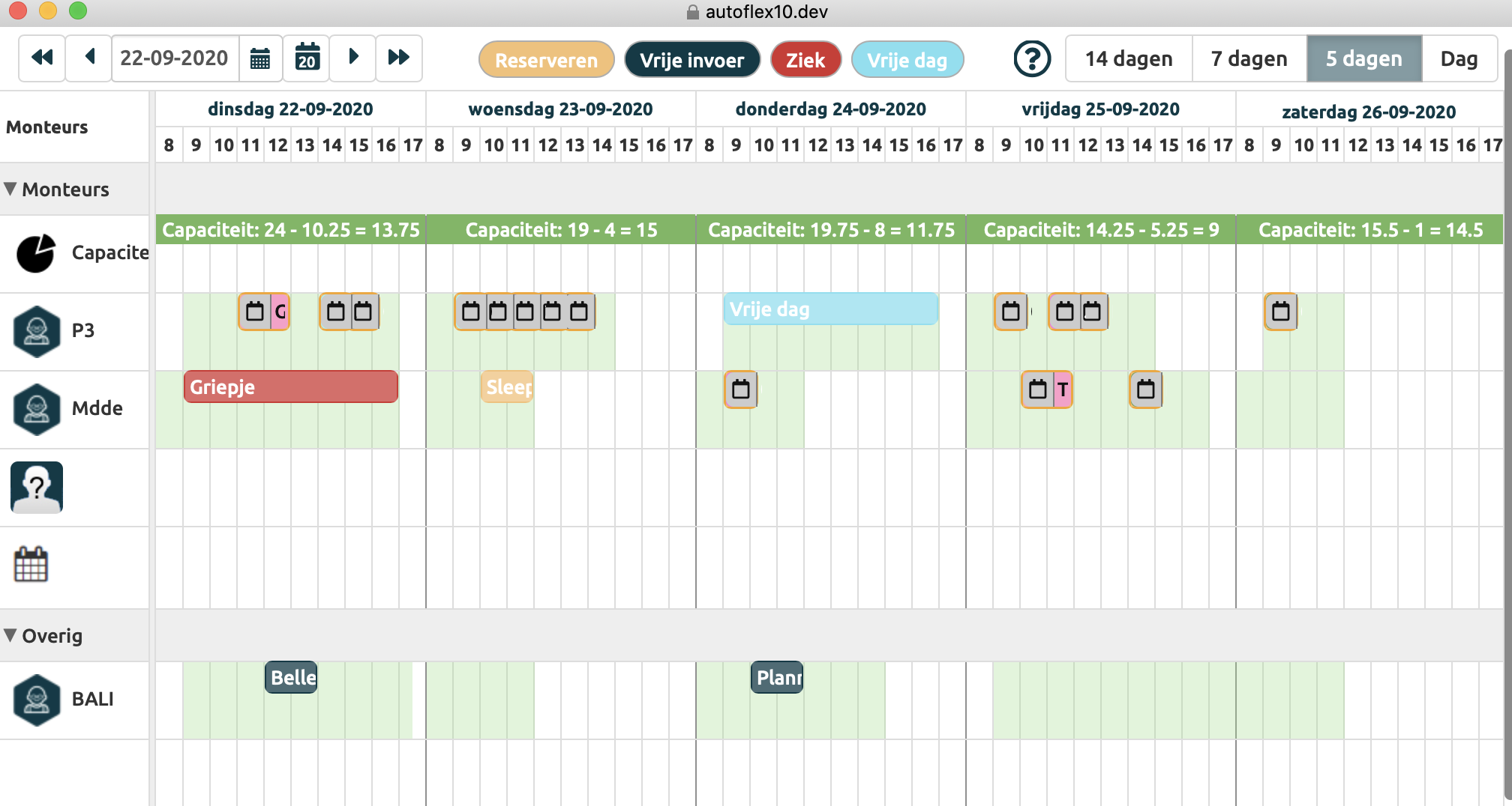 Planning per 5 dagen |