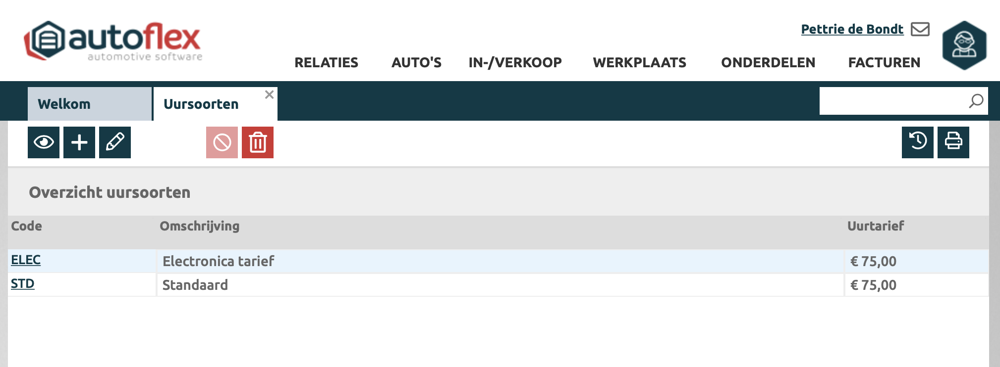 Deze uursoort is niet facturabel en wordt in de workflow aan de rechter zijkant getoondUurtarief = bedrag in euro’s