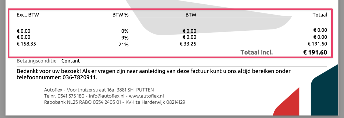 Heb ik zelf invloed op mijn factuur lay-out? Waar verander ik de tekst onderop mijn offerte? Kan ik subtotalen en grondslag tonen op mijn Autoflex factuur?