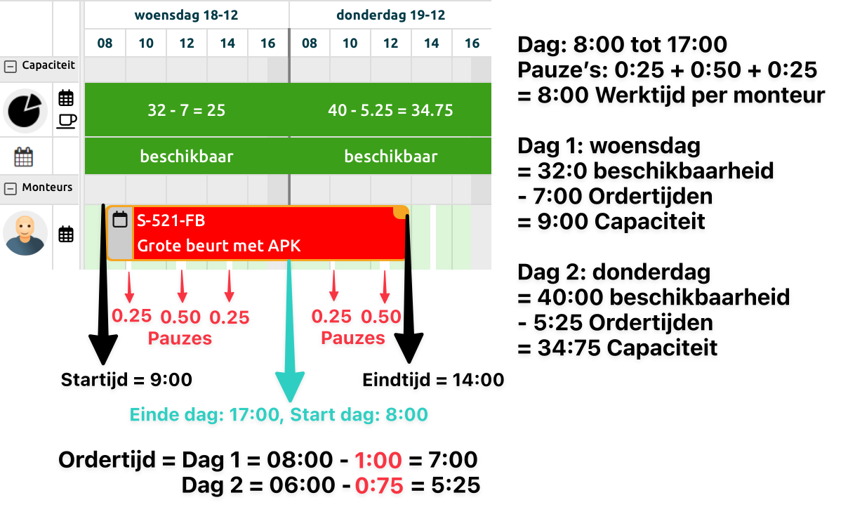Capaciteit voor order | Capaciteit voor order meerdere dagen |