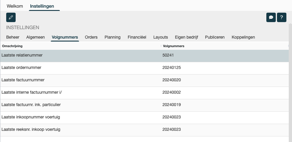 Volgnummers - instellingen
