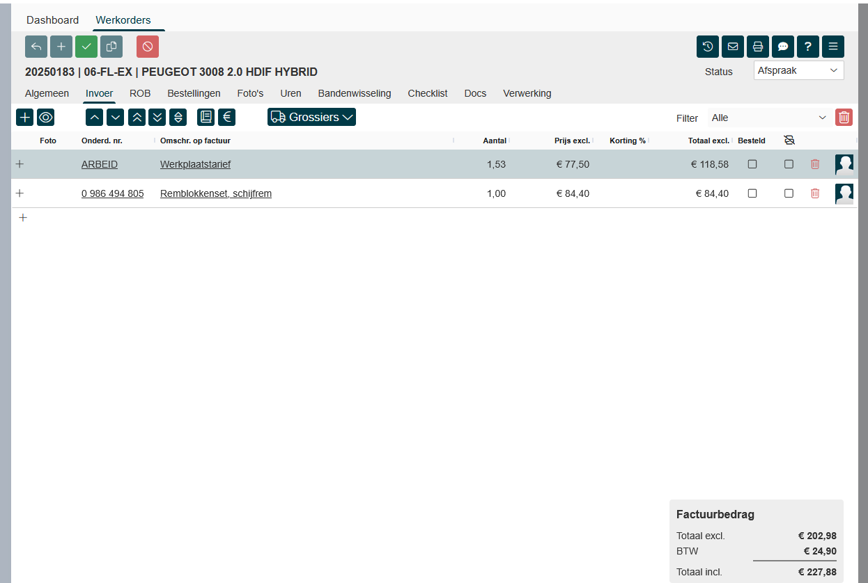 1. Door op het Ordernr. te klikken opent de werkorder in Autoflex
