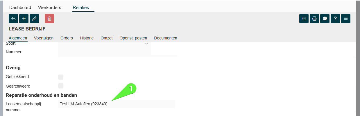 1. Relatie aangemaakt en gekoppeld aan het lease bedrijf.