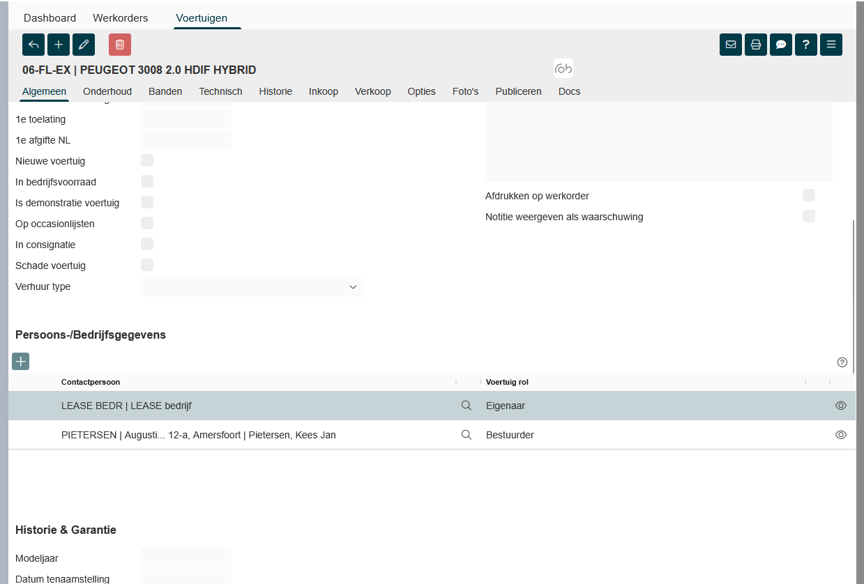 Koppel de leasemaatschappij als eigenaar aan het voertuig. De berijder van het voertuig krijgt de rol Bestuurder.