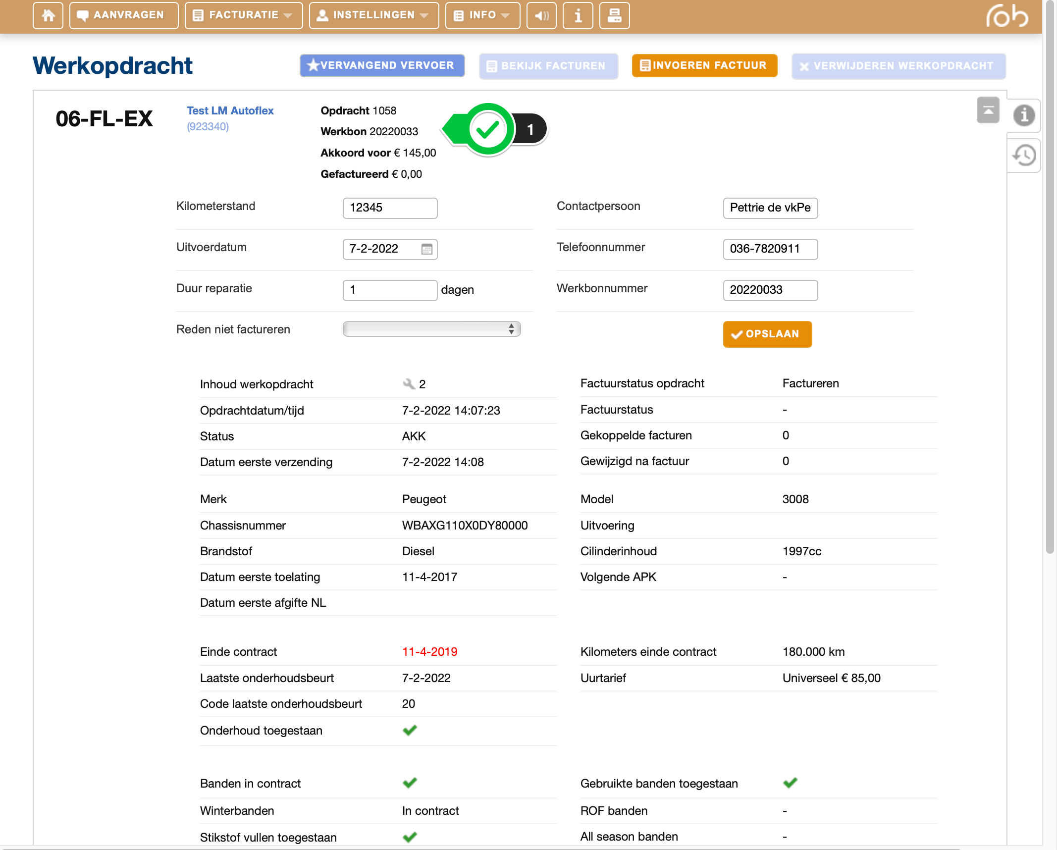 Nadat de leasemaatschappij de werkopdracht akkoord heeft bevonden, kan deze verwerkt worden naar een factuur. In de verwerking wordt er eerst gecontroleerd of de order kan worden gefactureerd.