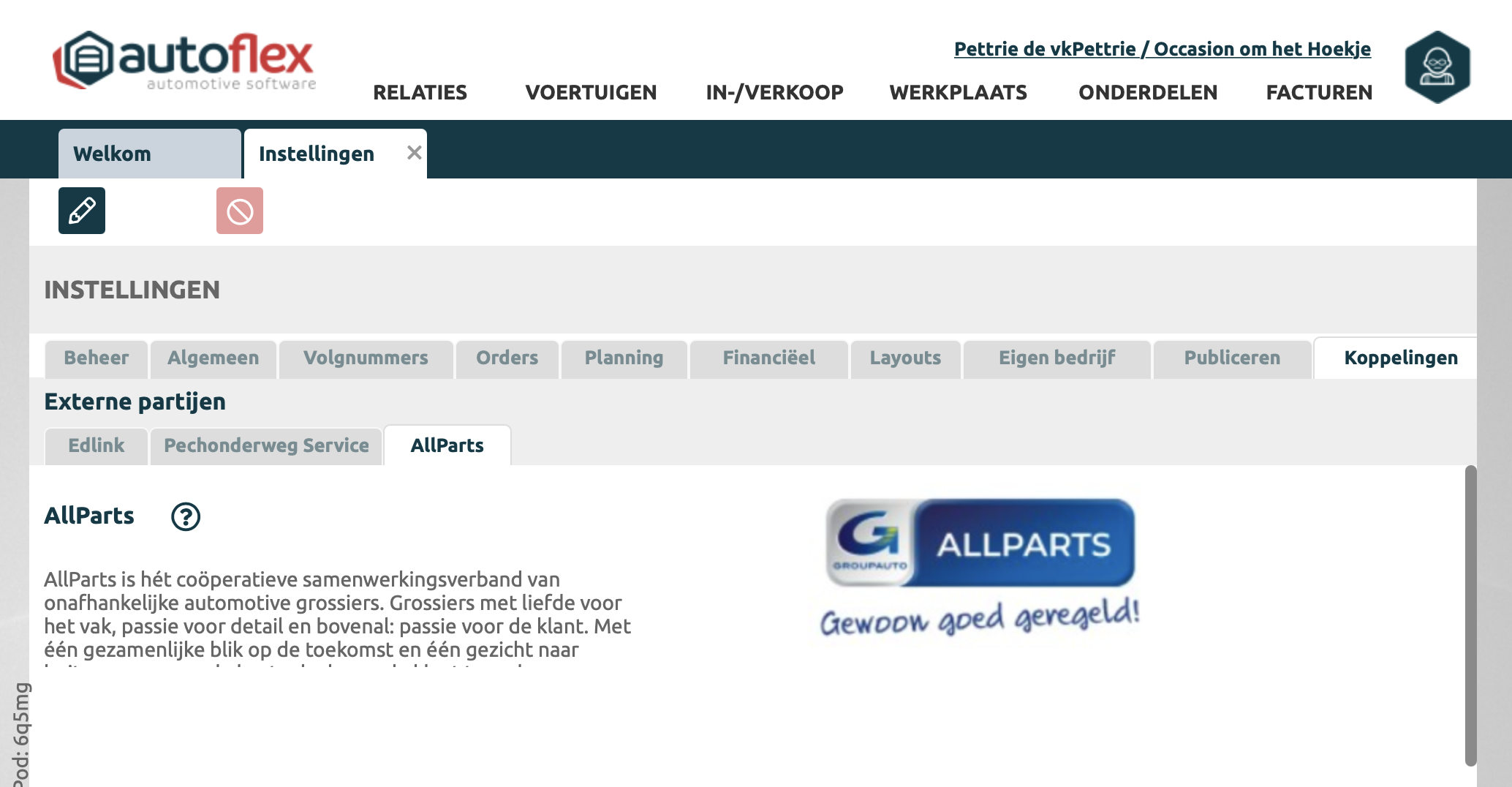 De volgende aanpassingen zijn actief bij de koppeling: AllParts