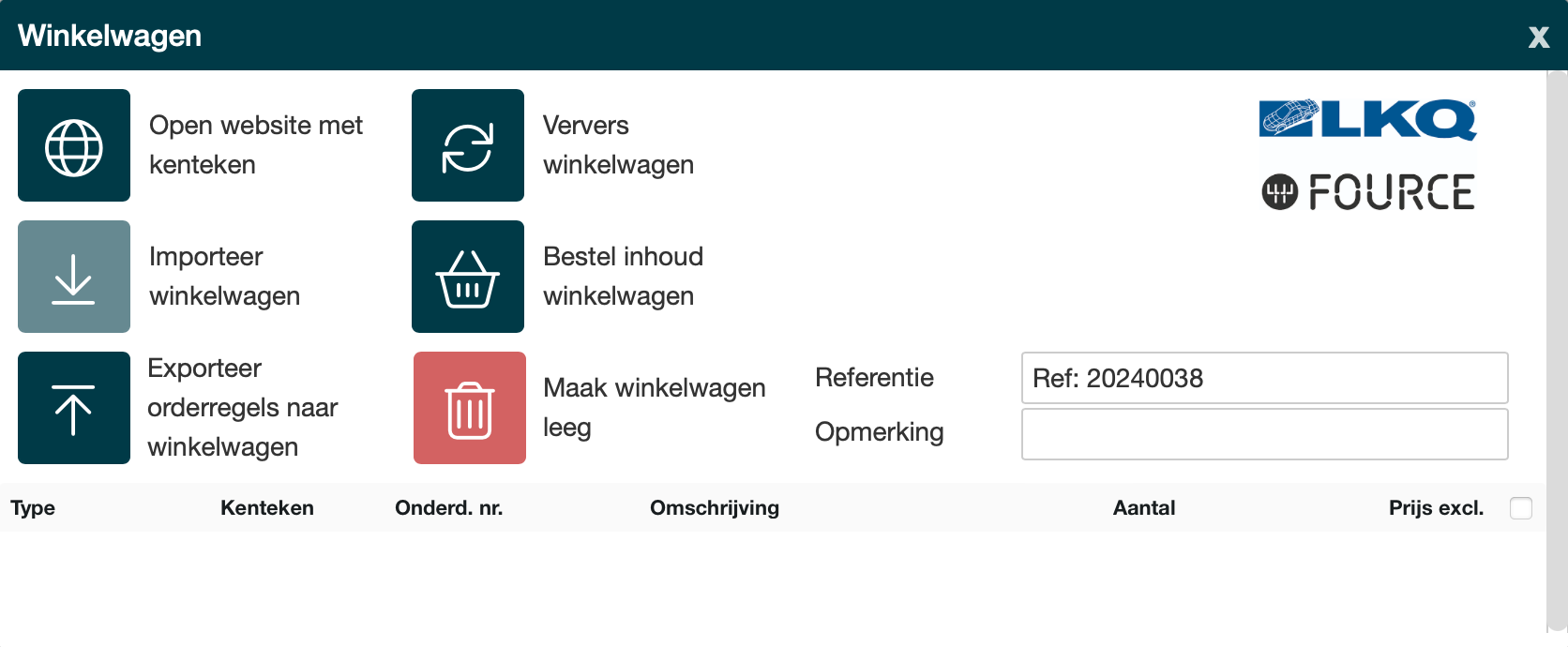 Zet de artikelen die je net met "Ververs Winkelwagen" hebt geladen op je Werkorder.