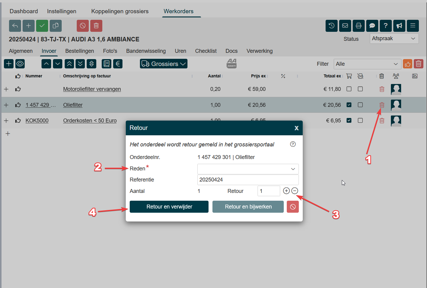 Stap 1: Artikelen en arbeid toevoegen aan de order