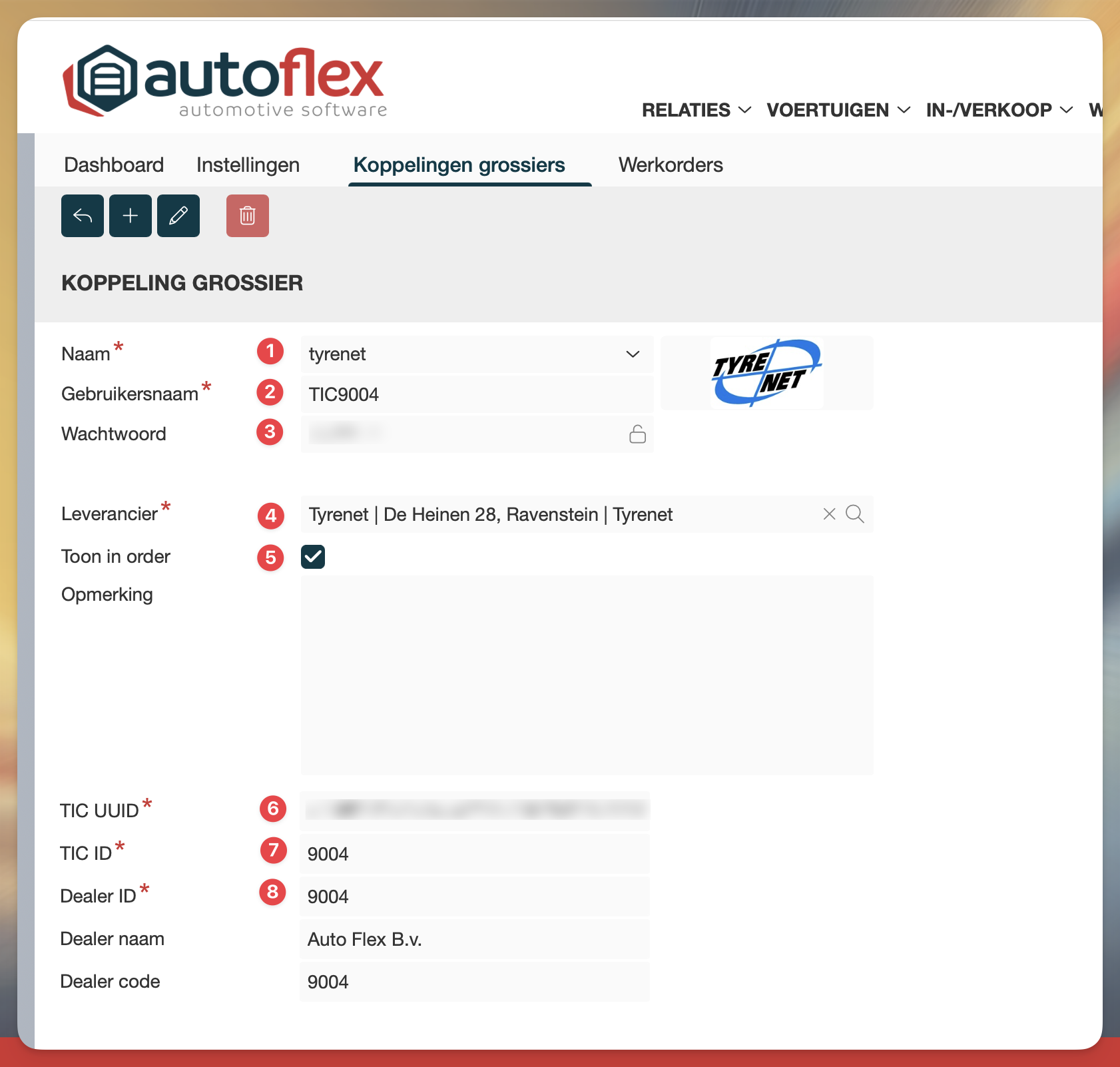 8. Dealer ID: dit is meestal dezelfde code als de TIC ID