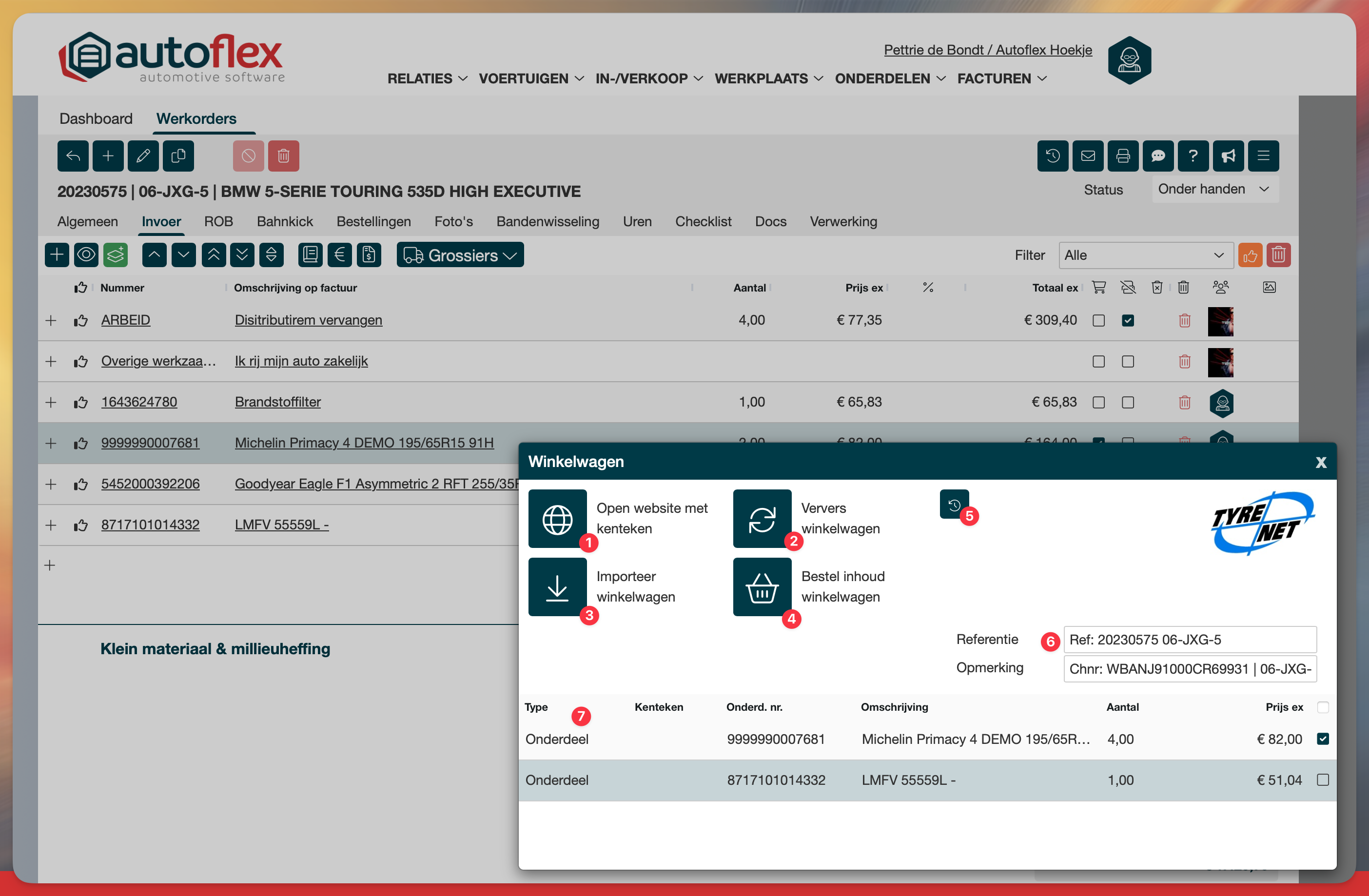 Het toevoegen van banden aan de order met de Tyrenet koppeling.