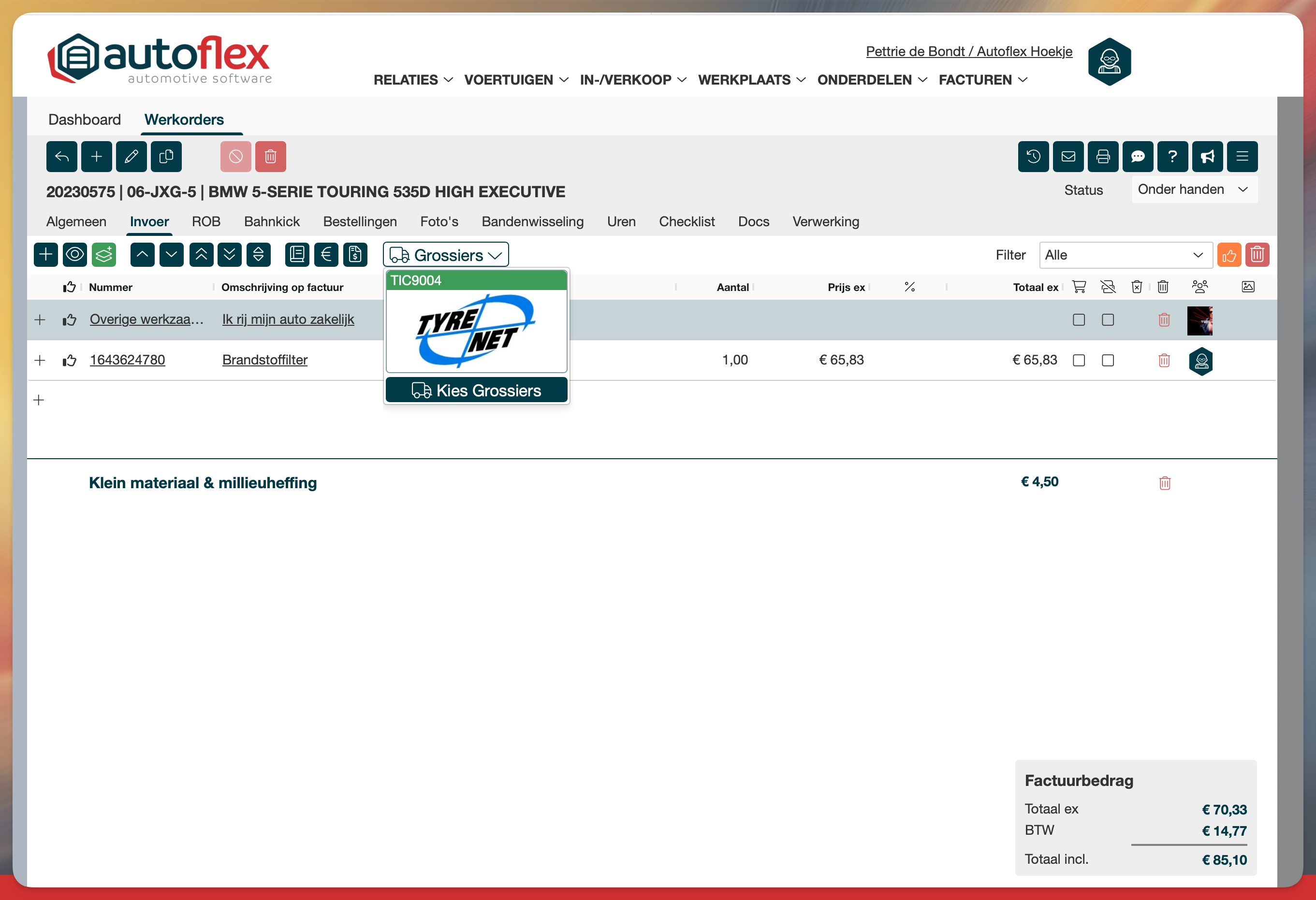 • Klik op de de Tyrenet grossier