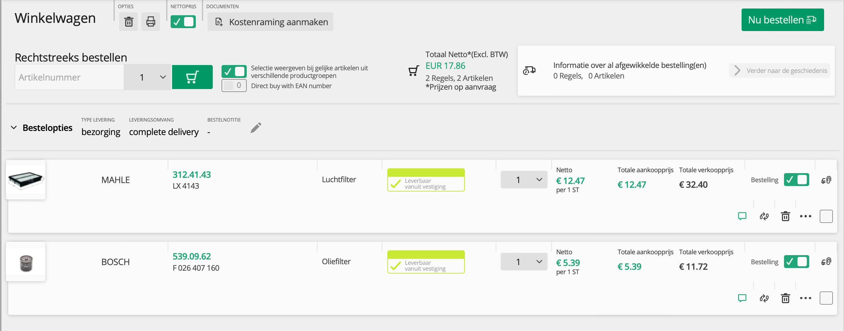 Voeg nu de gewenste onderdelen toe aan de winkelwagen