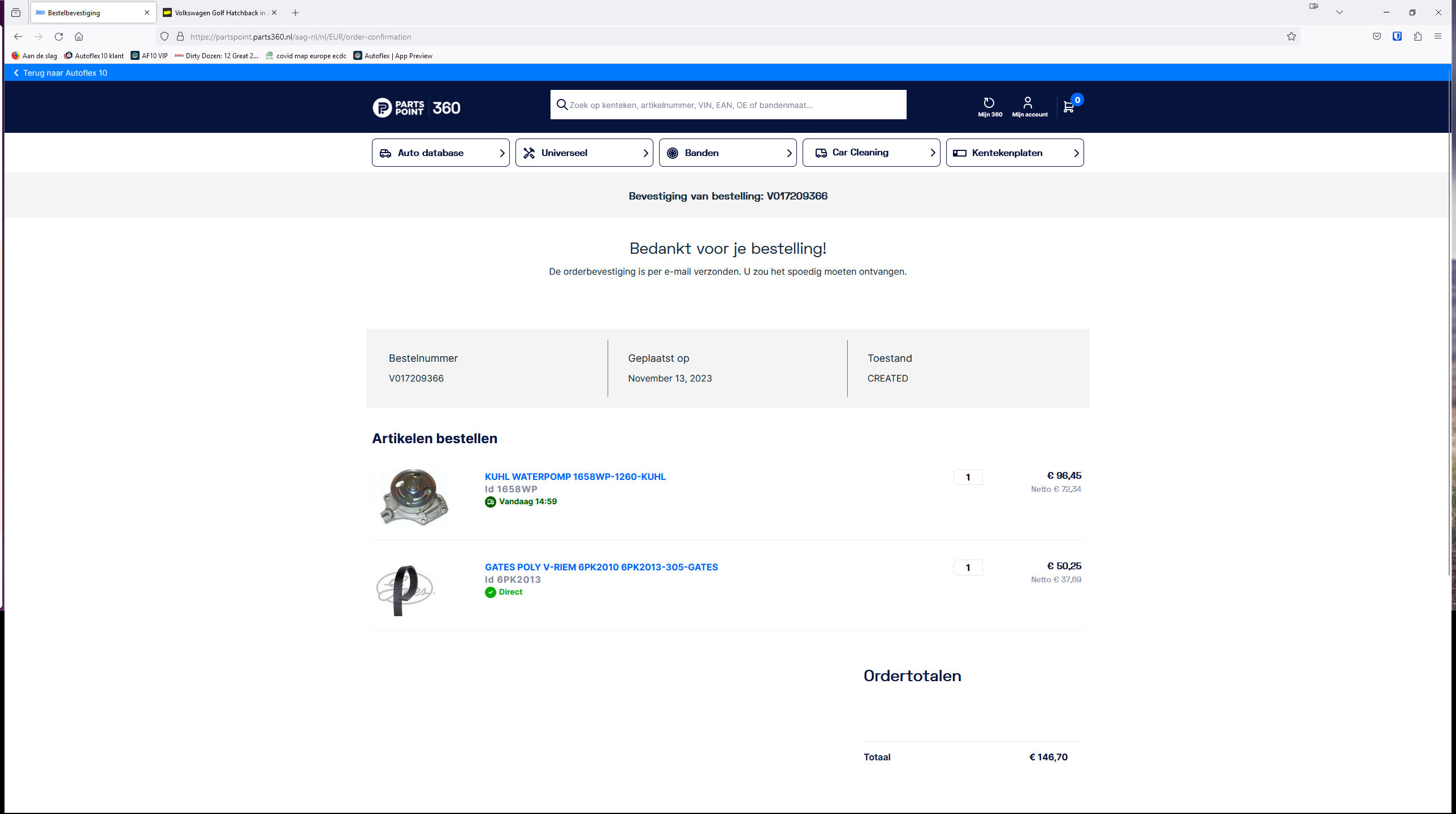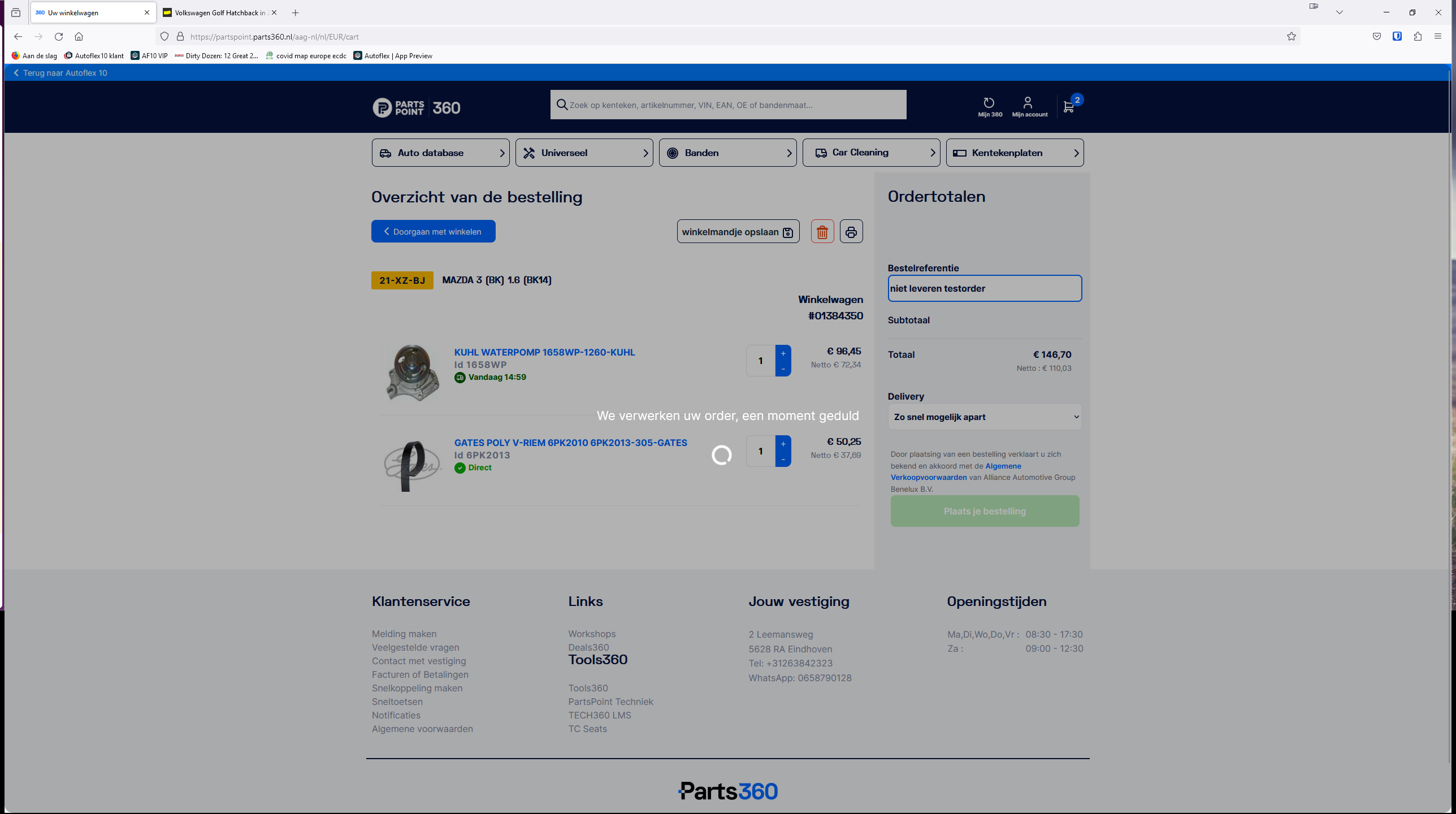 Je besteld deze onderdelen in het volgende scherm. De gekoppelde order wordt bijgewerkt.