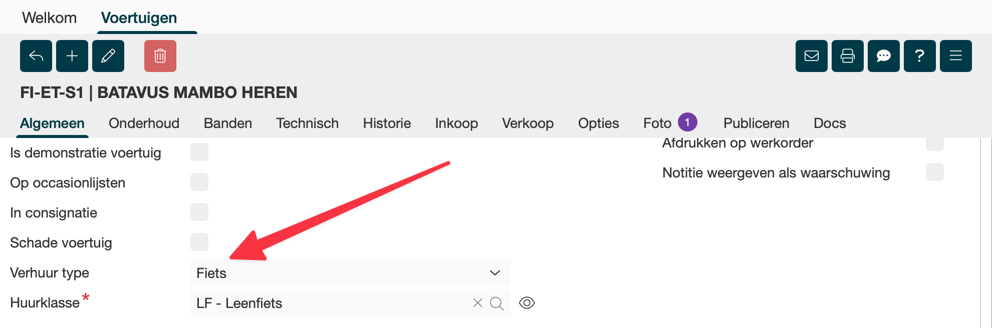 Geef bij 1 of meer voertuigen aan dat het een huur/leen voertuig is, deze worden gebruikt bij EdLink koppeling.