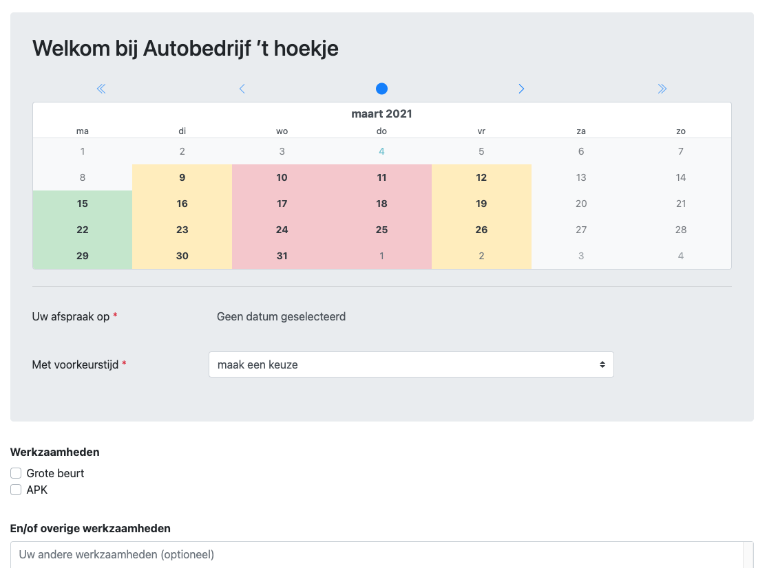 Online Afspraken - voor de website bouwer