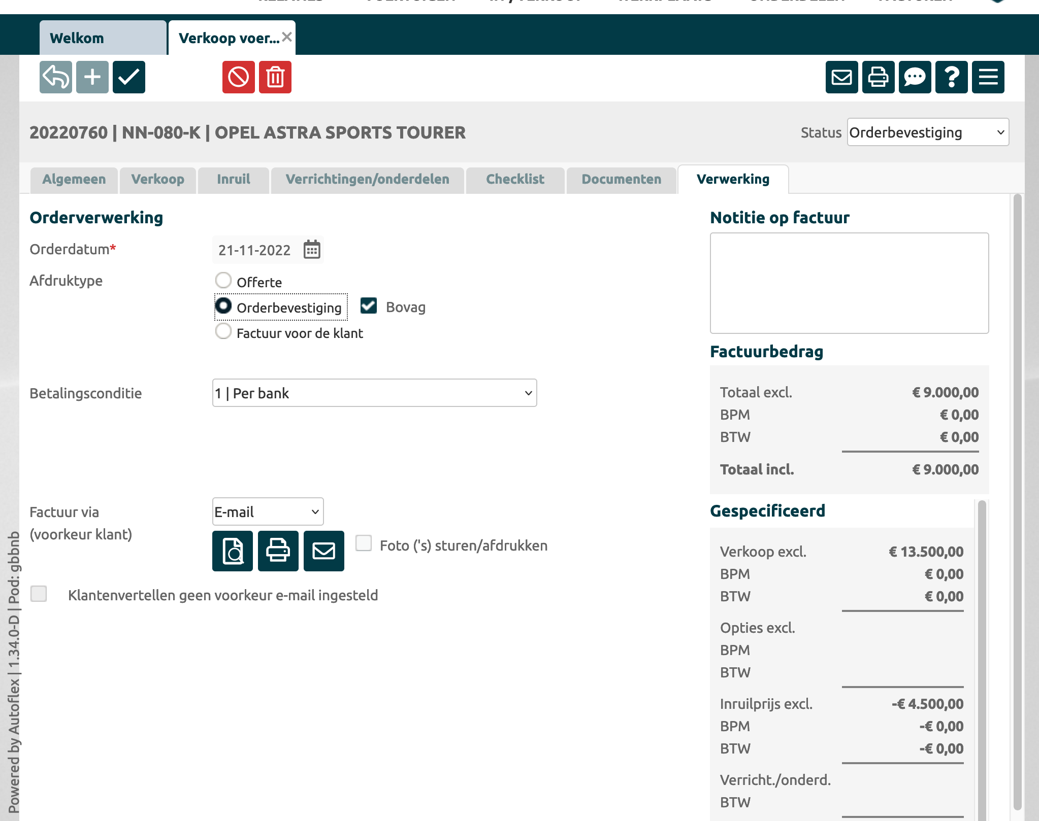 Verkoop voertuig → Verwerking - Orderbevestiging |