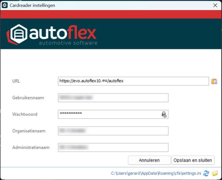 De CardReader wordt standaard in deze map geinstalleerd: C:\cfa |