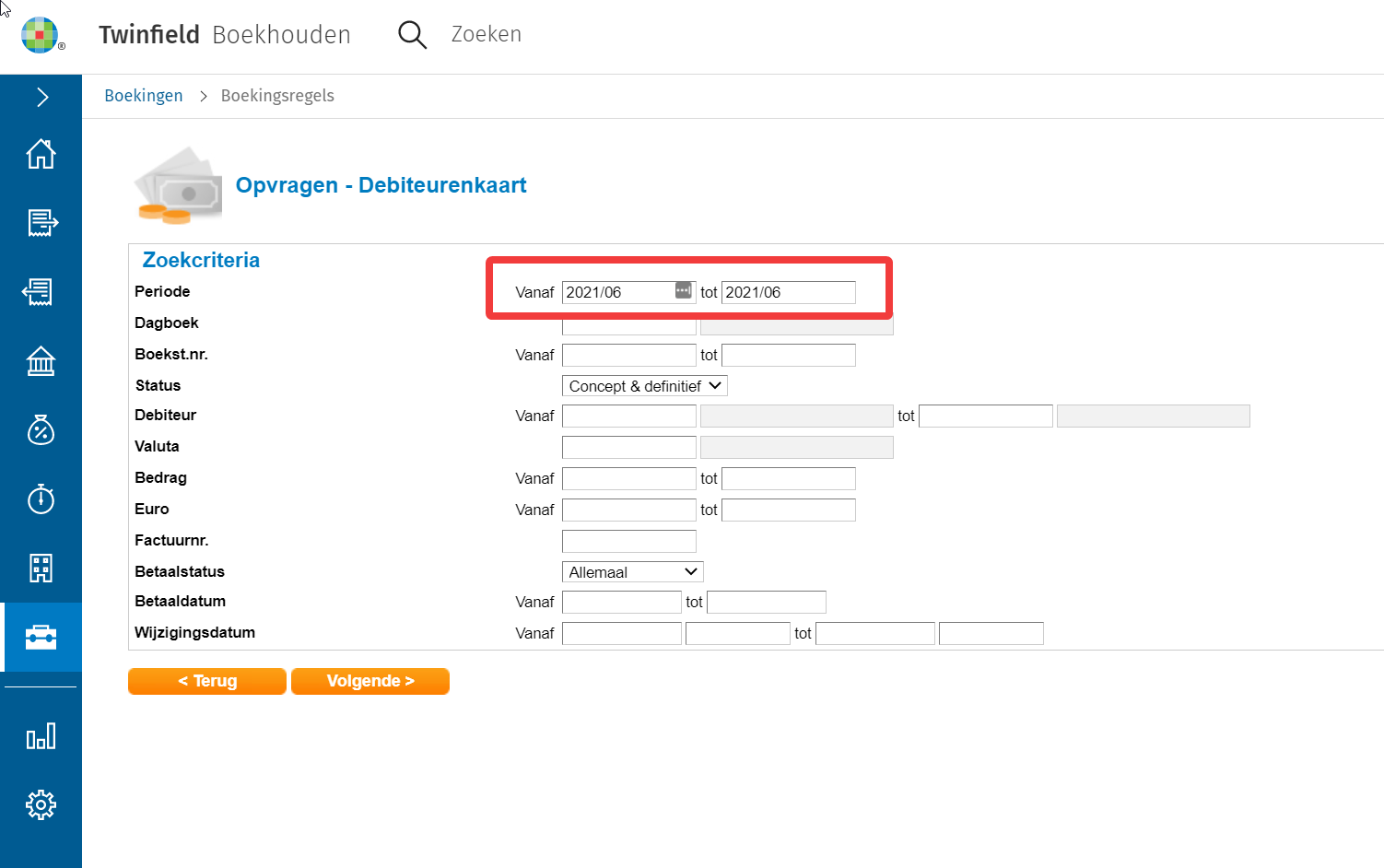 Typ een periode (jaar/maand) en klik op volgende, bijvoorbeeld 2021/06