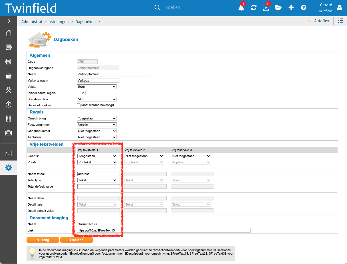 Om de PDF link te kunnen koppelen in Twinfield dient het volgende te worden ingesteld.