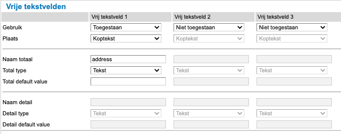 Veld | Vrij tekstveld 1 | Vrij tekstveld 2 | Vrij tekstveld 3 |