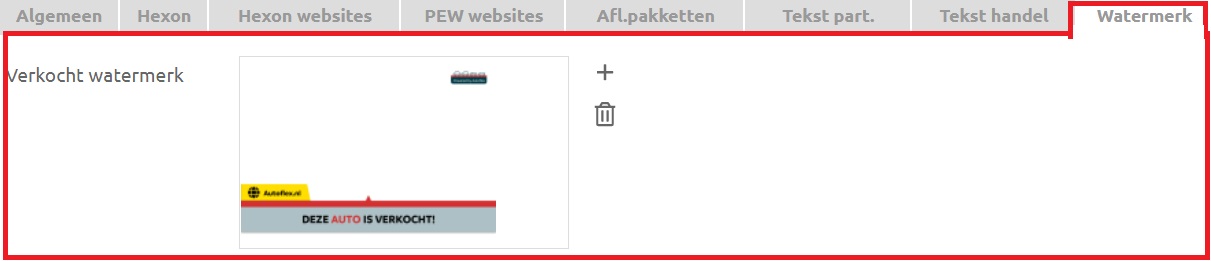 Watermerk toevoegen, deze is zichtbaar in de foto van de advertentie als het voertuig op verkocht wordt gezet bij de voertuiggegevens.