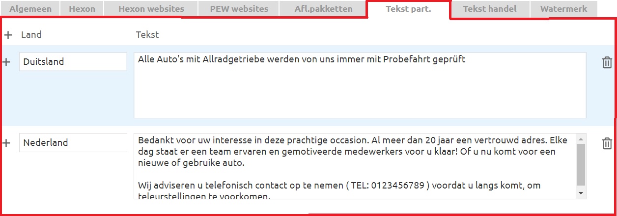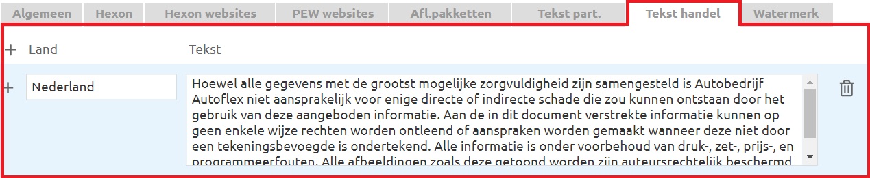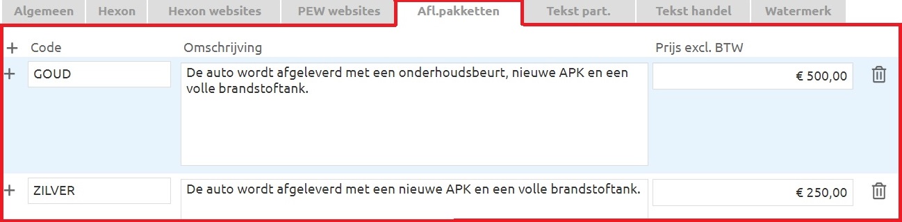 Je kan kiezen welke pakketten er worden meegenomen, je kan zelf de tekst invullen die je wil tonen voor particulieren en/of handelaren.