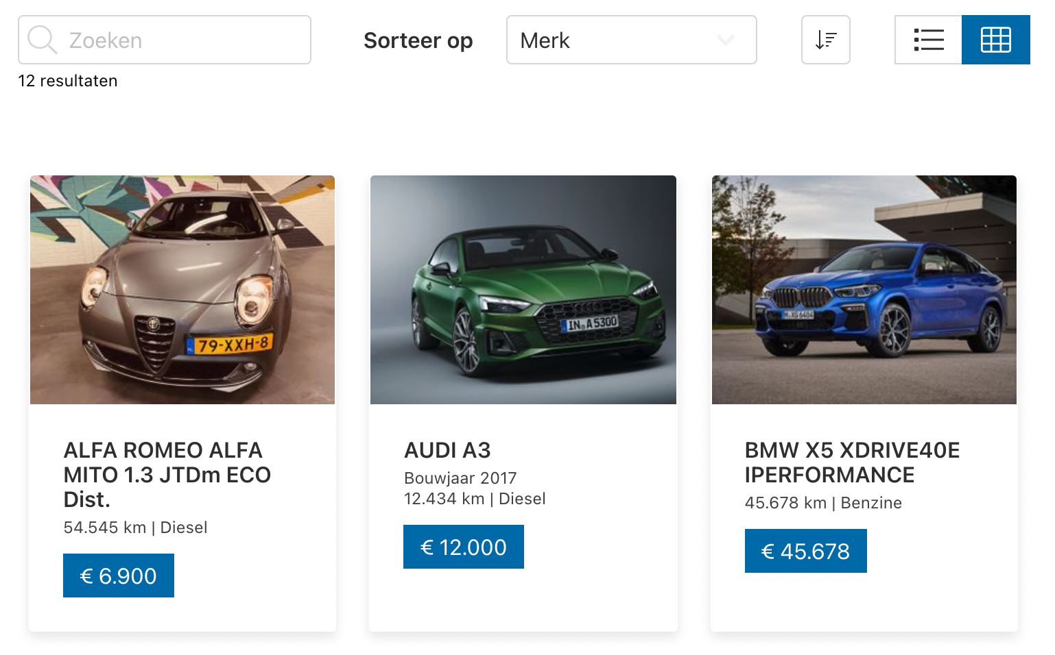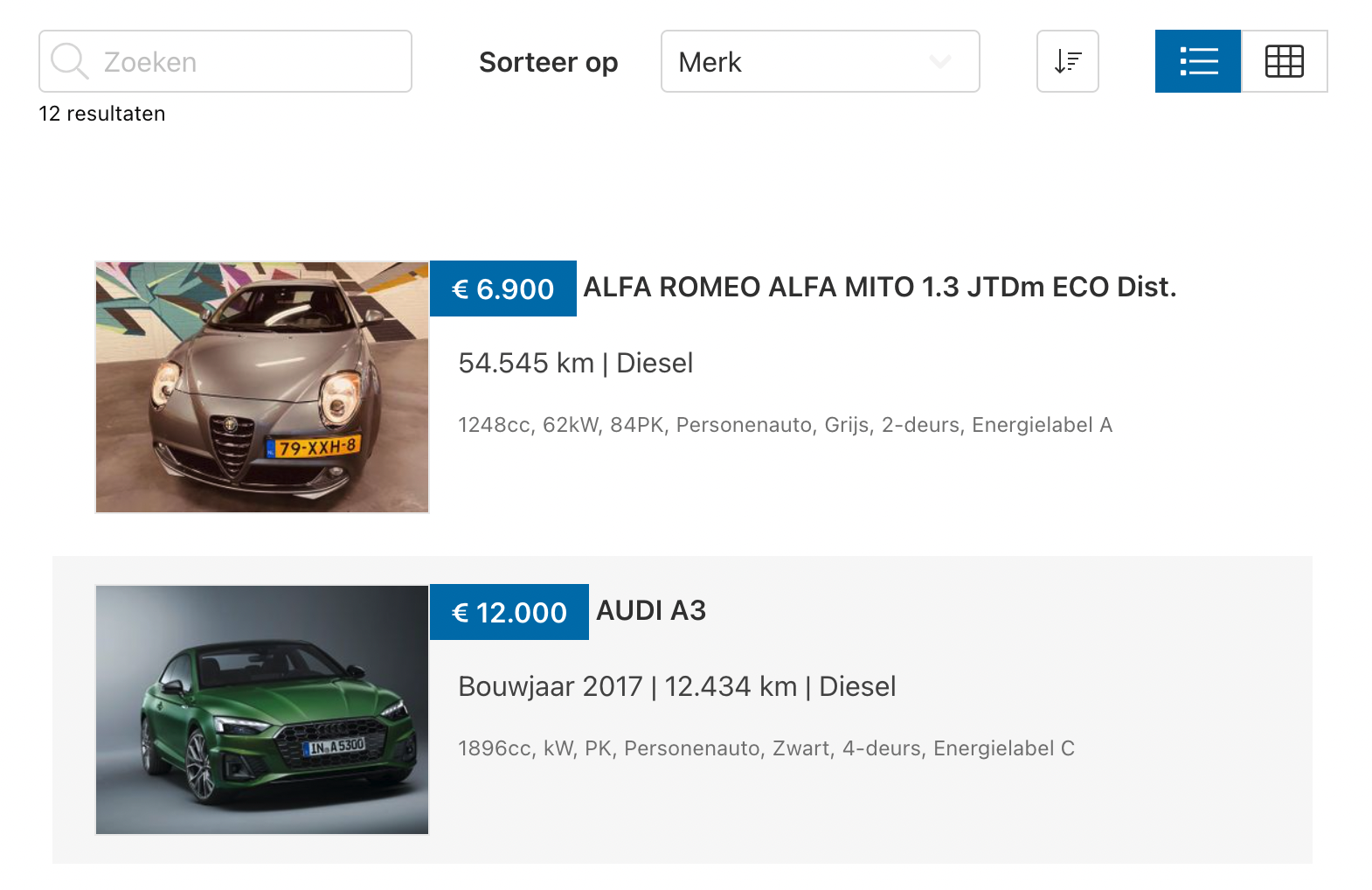 Door het doorgeven van een PEW-widget settings parameter bij het opstarten van de widget kan worden aangegeven of standaard de lijst of het grid getoond wordt.