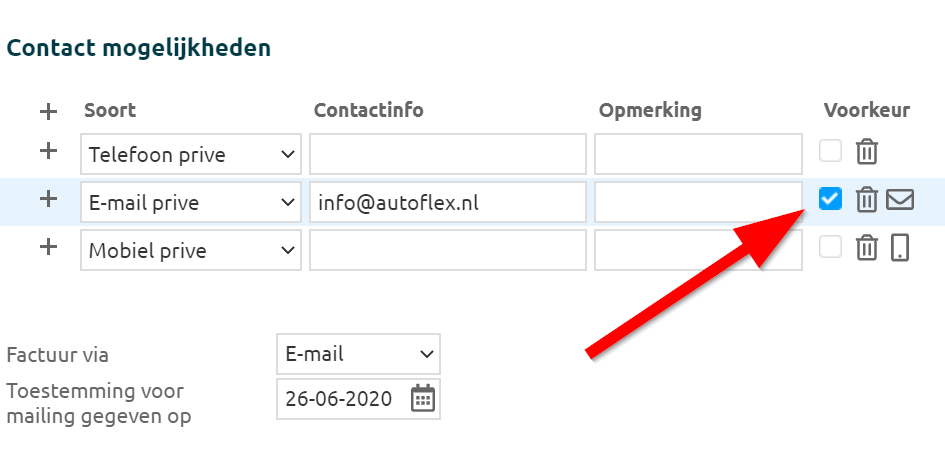 Voorkeur e-mail adres bij eigenaar: