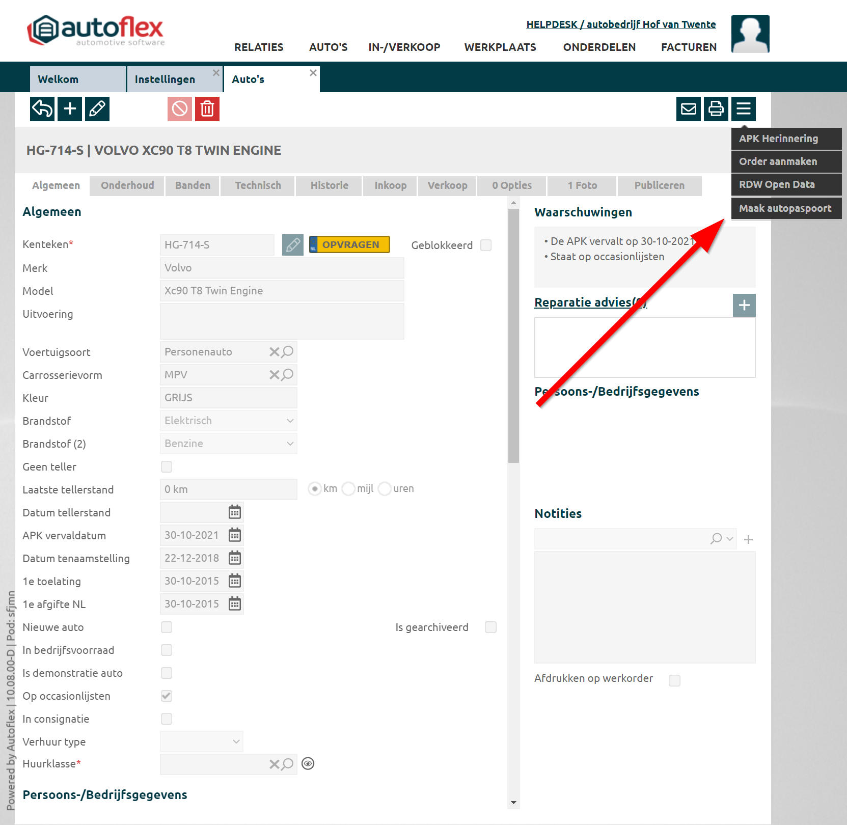 Klik hiervoor op “Maak autopaspoort”.