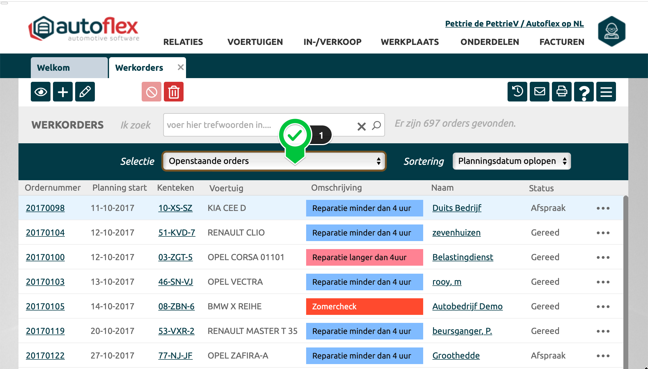 Open werkorders |