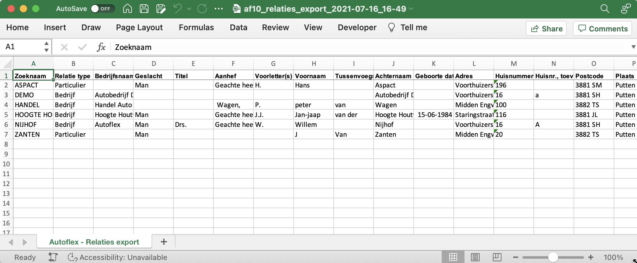 Je kan nu relaties exporteren vanuit Autoflex naar een Excel (XLS) bestand.
