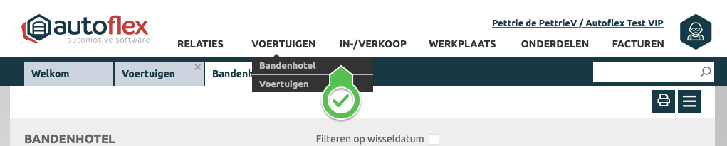 klik op menu item 'bandenhotel' onder 'voertuigen' |