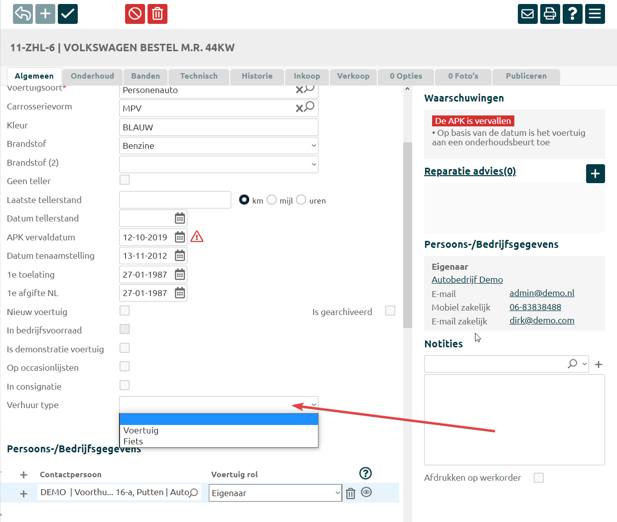 Stap 2: Maak het voertuig een huur/leenvoertuig
