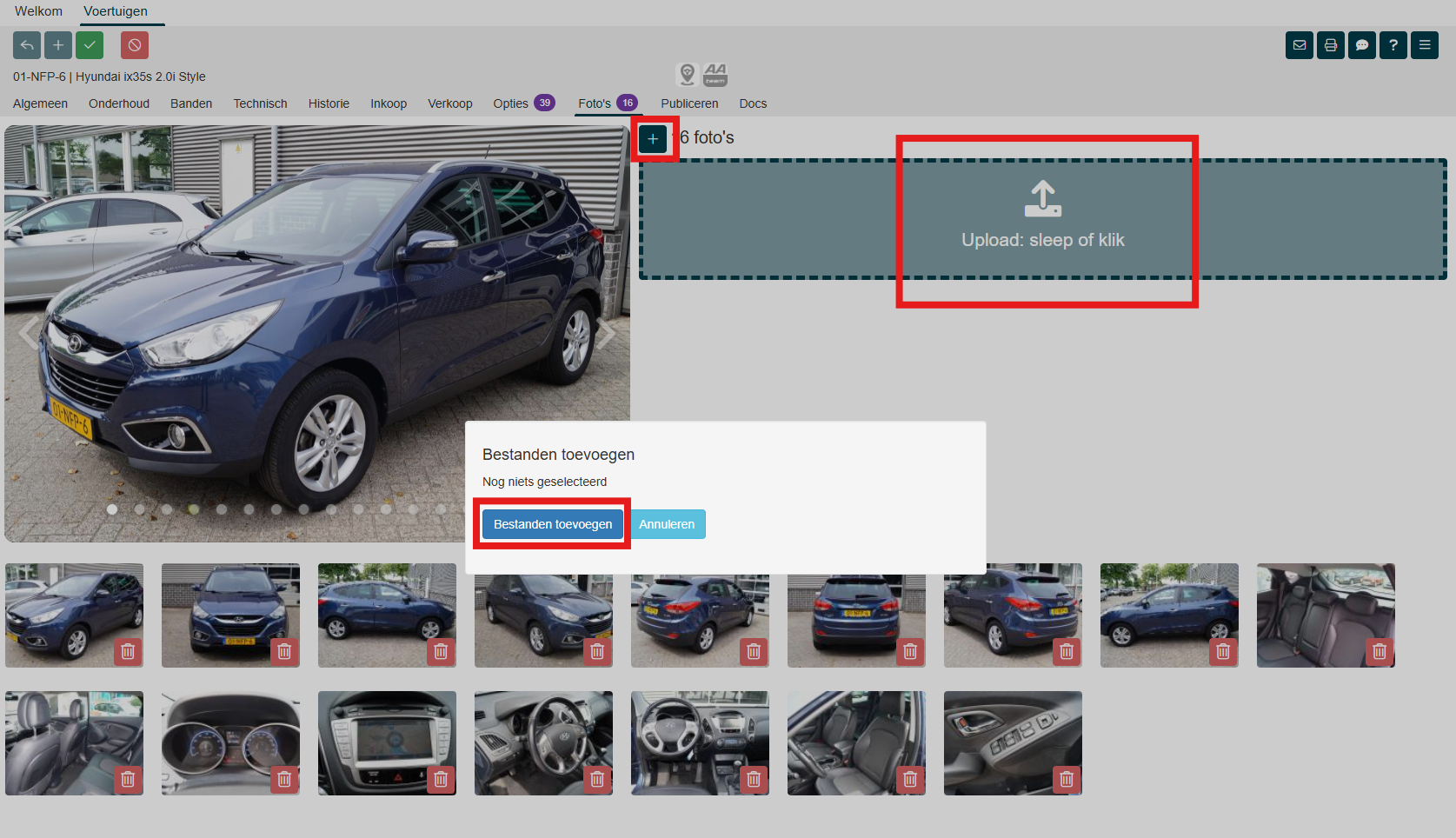 Zodra het voertuig de status 'Verkocht' heeft kun je geen foto's toevoegen of verwijderen. Ook de volgorde van de foto's kun je niet veranderen.