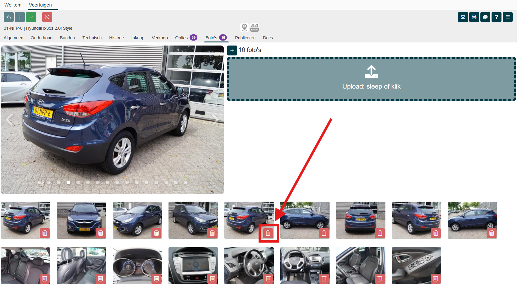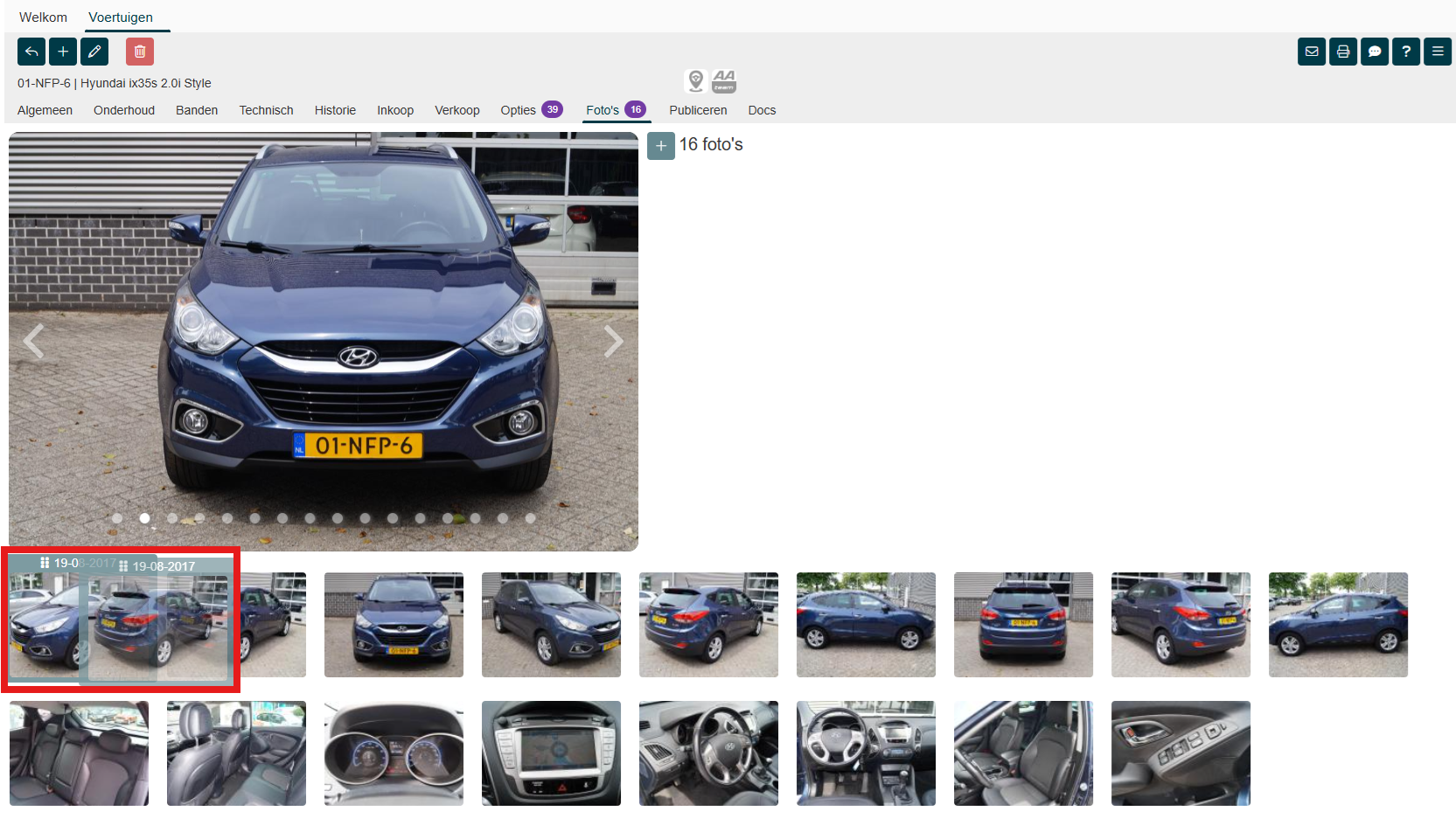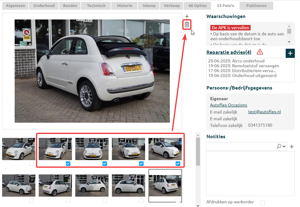 Zodra het voertuig de status 'Verkocht' heeft kun je geen foto's toevoegen of verwijderen. Ook de volgorde van de foto's kun je niet veranderen.