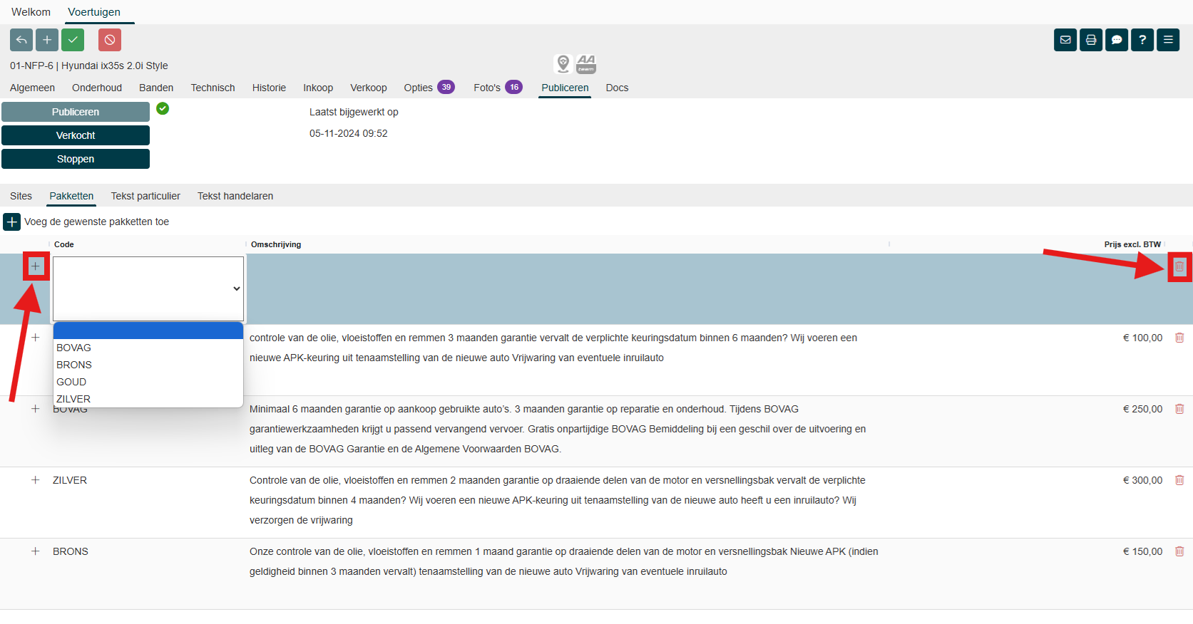 Wanneer je de voertuig verkoopt selecteer je 1 pakket op de order.