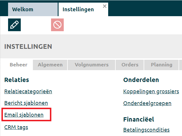 Voordat je een APK herinnering gaat mailen, pas eerst de tekst aan van de e-mailsjabloon van de APK herinnering, ga naar: Instellingen → Beheer → Emailsjablonen | |